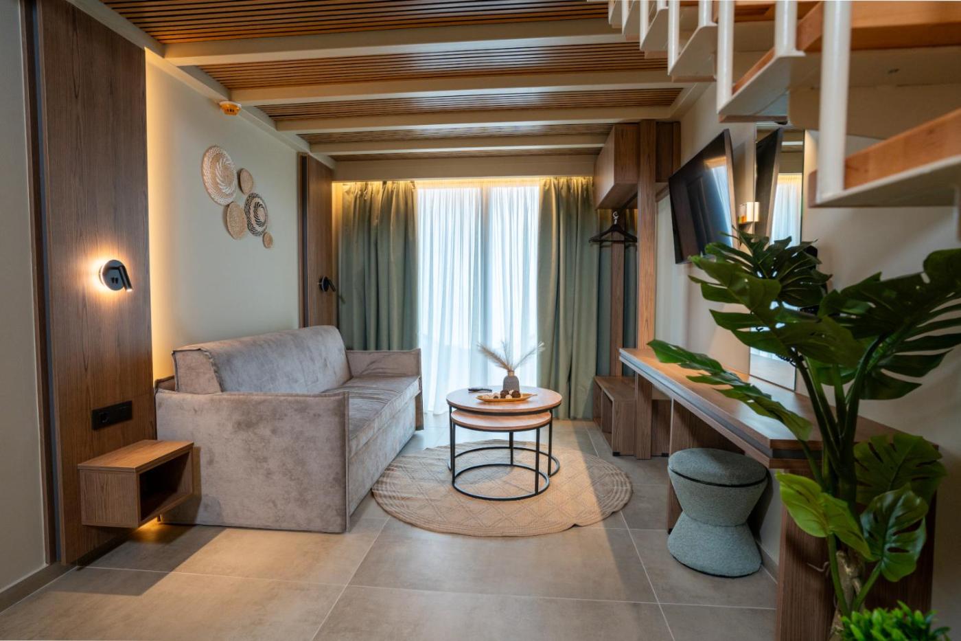 Junior Suite with Balcony. This suite features 1 living room, 2 separate bedrooms and 1 bathroom with a bath and free toiletries. In the well-equipped kitchenette, guests will find a refrigerator, kitchenware, an oven and an electric kettle. The air-conditioned suite features a flat-screen TV, soundproof walls, a seating area, a wardrobe as well as sea views. The unit has 2 beds. ;