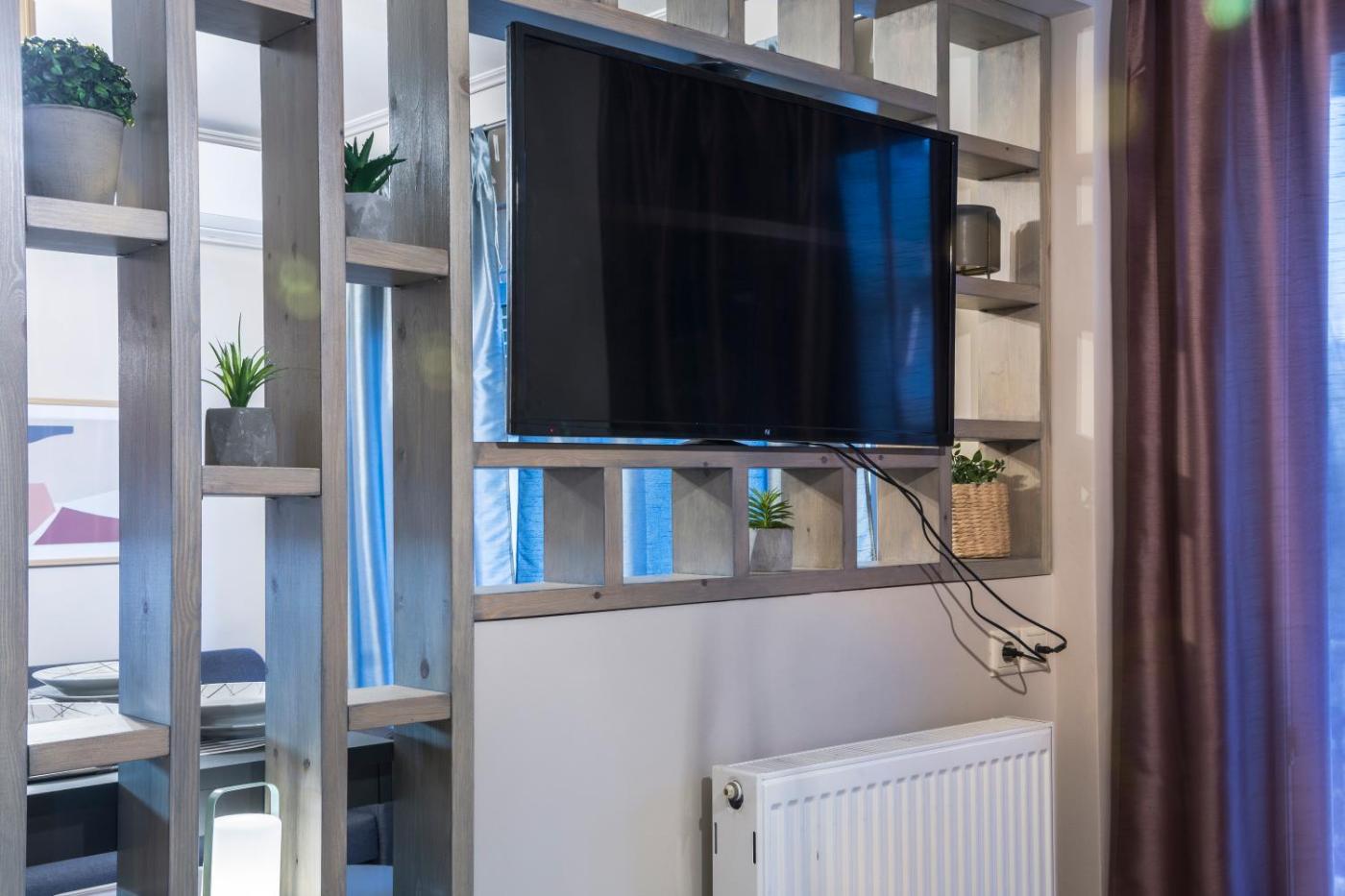 Studio Apartment. This apartment includes 1 living room, 1 separate bedroom and 1 bathroom with a shower and free toiletries. In the well-equipped kitchen, guests will find a stovetop, a refrigerator, kitchenware and an oven. The air-conditioned apartment offers a flat-screen TV with streaming services, a washing machine, soundproof walls, a tea and coffee maker as well as garden views. The unit has 2 beds.